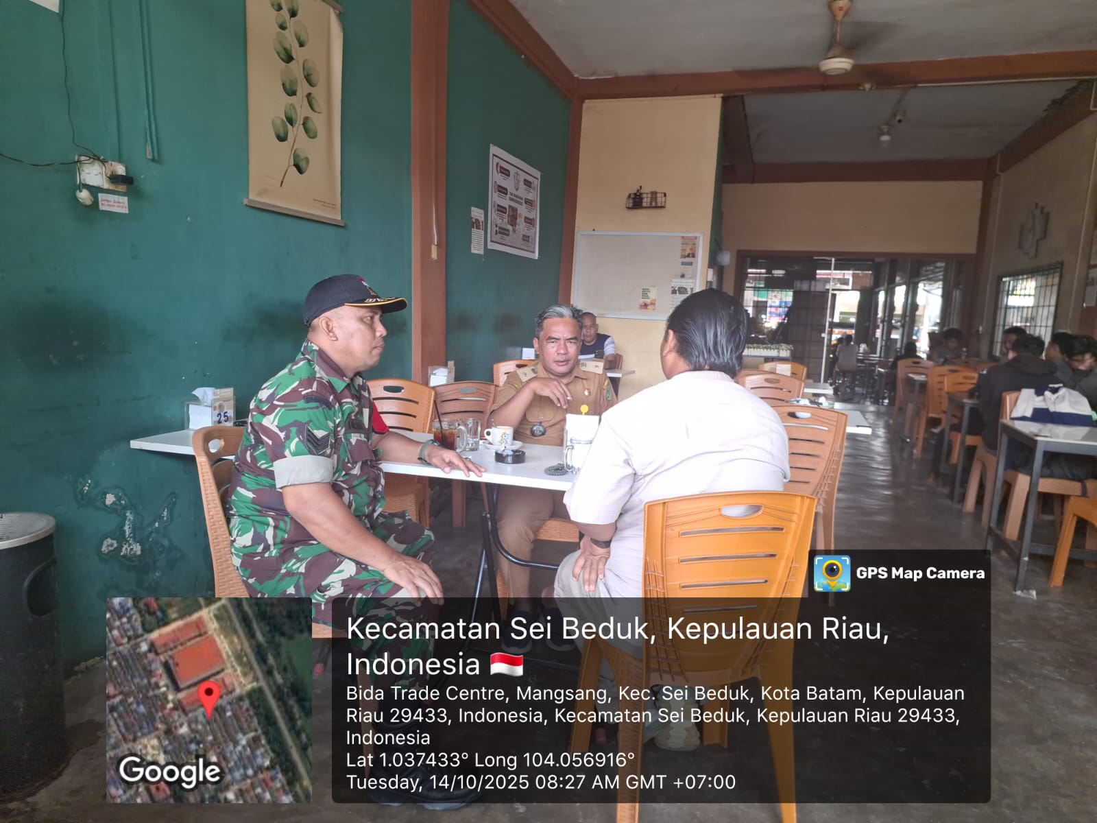 Kegiatan yang berlangsung sejak pukul 08.30 WIB tersebut merupakan bagian dari program pembinaan teritorial rutin yang dilakukan Babinsa di wilayah binaan. Turut hadir dalam kegiatan tersebut sejumlah tokoh masyarakat setempat, di antaranya Bapak Iwan dan Bapak Wowo, yang ikut berdialog langsung dengan Babinsa terkait kondisi keamanan dan kehidupan sosial di lingkungan mereka.