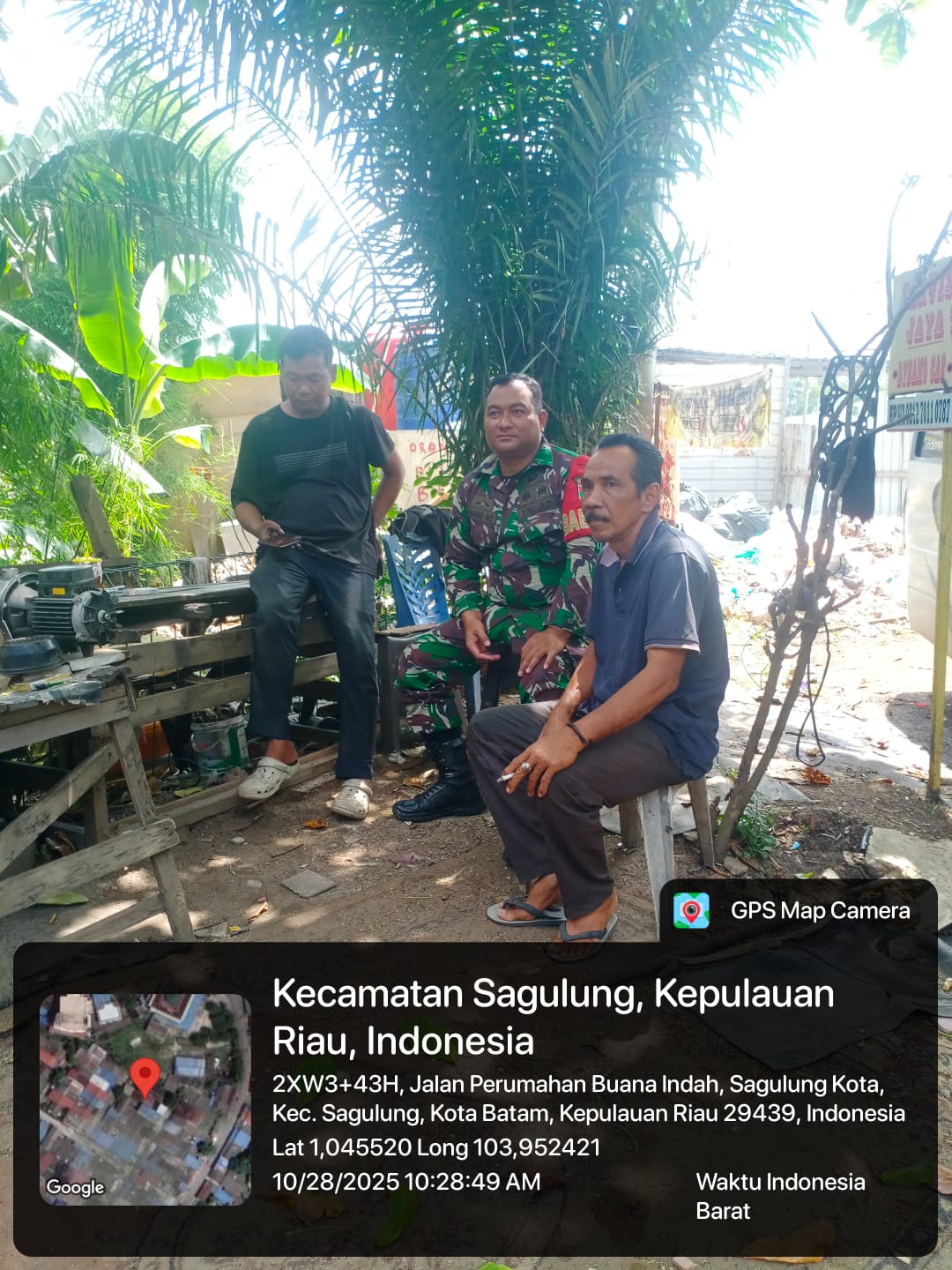 Kegiatan yang berlangsung di Kelurahan Sagulung Kota, Kecamatan Sagulung ini dihadiri oleh sejumlah tokoh masyarakat setempat, di antaranya Bapak Kusni dan Bapak Imron, serta beberapa warga lainnya. Suasana pertemuan berlangsung akrab dan penuh kekeluargaan, mencerminkan kuatnya ikatan antara prajurit TNI dan masyarakat di tingkat kelurahan.