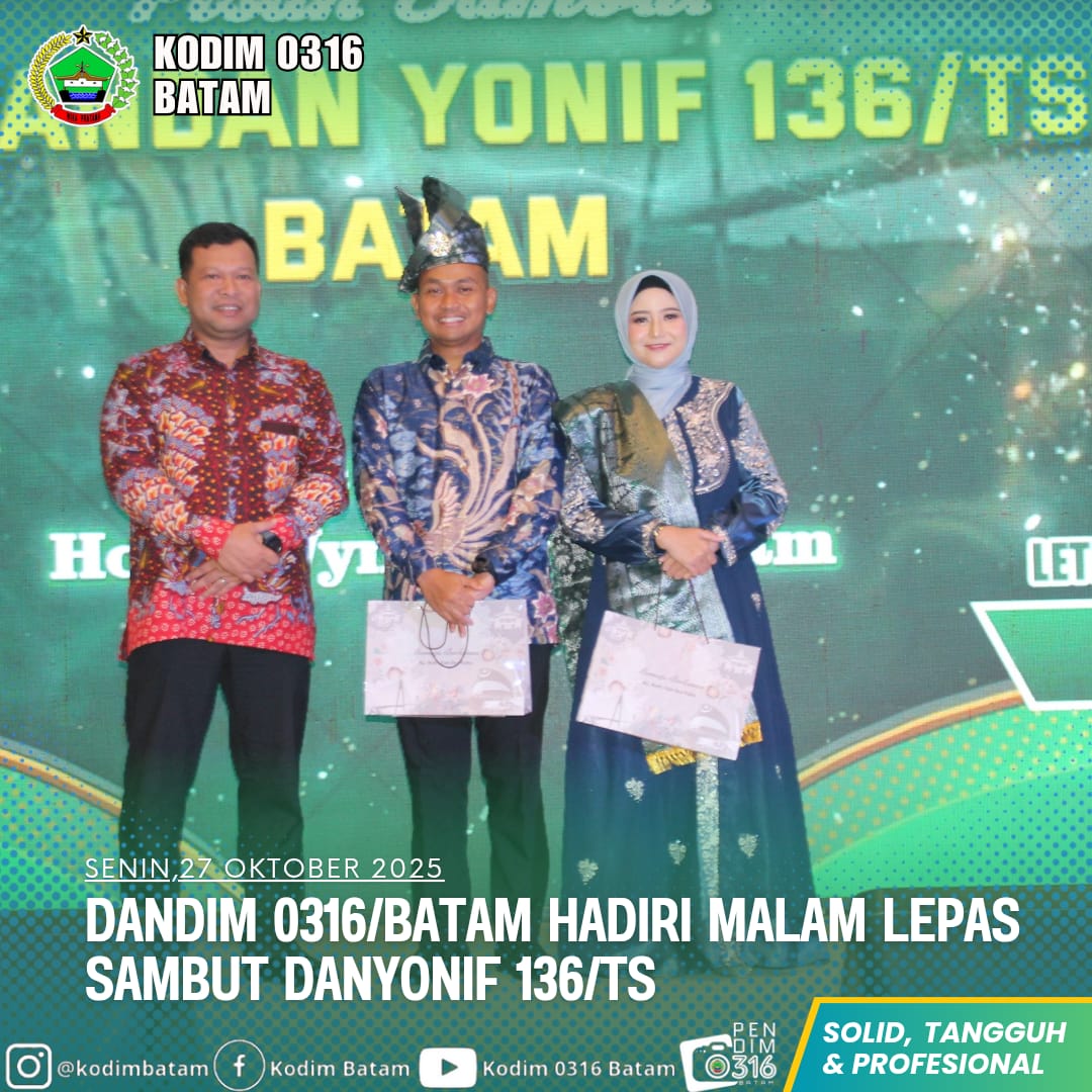 Kodim0316] Suasana keakraban dan rasa kekeluargaan begitu terasa saat Komandan Kodim 0316/Batam Kolonel Arh Yan Eka Putra, S.Sos. menghadiri Malam Lepas Sambut Komandan Batalyon Infanteri 136/Tuah Sakti yang berlangsung di Hotel Wyndham Batam, Senin malam (27/10/2025).