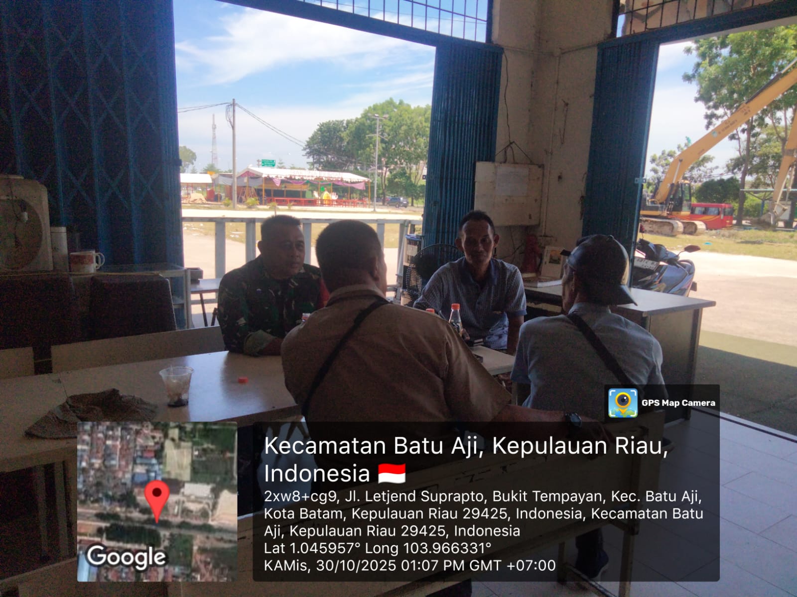 Kodim0316] Dalam upaya memperkuat hubungan antara aparat teritorial dan masyarakat serta menjaga stabilitas keamanan di wilayah binaan, Babinsa 14 Kelurahan Bukit Tempayan, Koramil 02/Sekupang, Serka Mukhtar, melaksanakan kegiatan komunikasi sosial (komsos) bersama warga di depan Puskopkar, Kelurahan Bukit Tempayan, Kecamatan Batu Aji, pada Kamis (30/10/2025) pukul 13.12 WIB.
