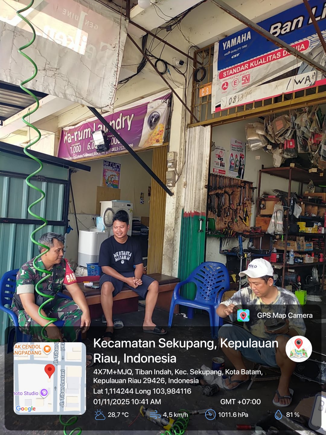 Kodim0316] Sebagai bagian dari tugas pembinaan teritorial di wilayah binaan, Babinsa Kelurahan Tiban Indah, Koramil 02/Sekupang, Kodim 0316/Batam, Sertu M. Fitriadi, melaksanakan kegiatan Komunikasi Sosial (Komsos) bersama warga di wilayah Tiban Indah, Kecamatan Sekupang, pada Sabtu (1/11/2025) pukul 10.30 WIB.