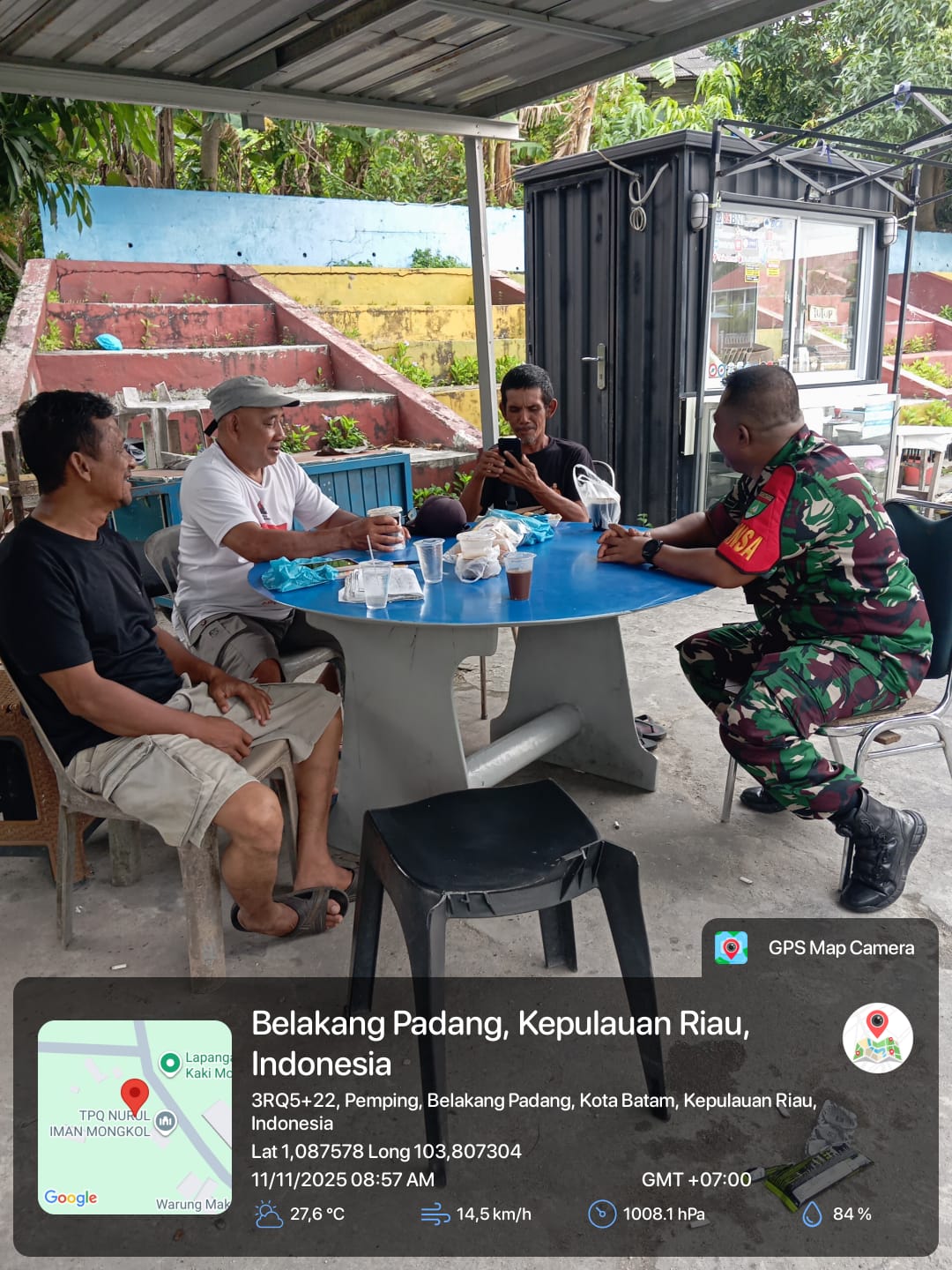 Kodim0316]  Babinsa Kelurahan Pemping, Koramil 05/Belakang Padang, Serda Roni Sitorus melaksanakan kegiatan komunikasi sosial (komsos) bersama warga binaan di wilayahnya pada Selasa (11/11/2025) pagi.