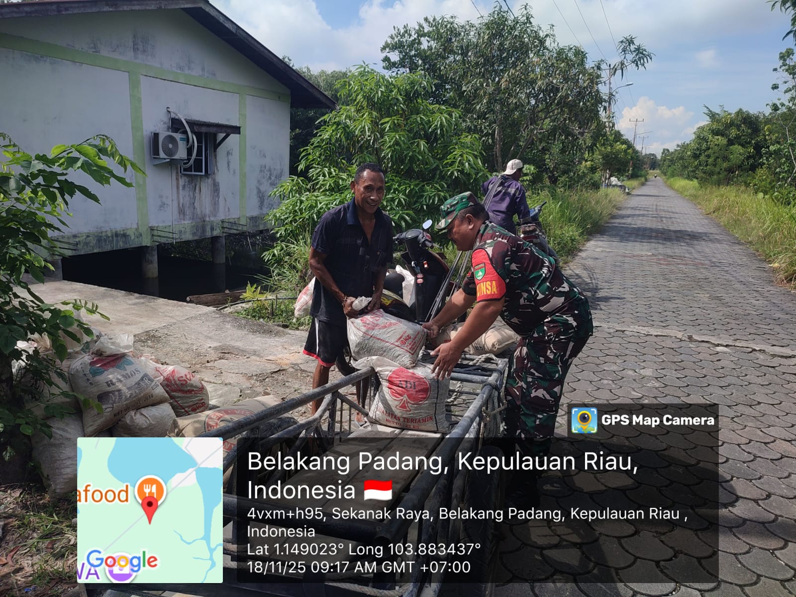 Kehadiran Babinsa tidak hanya sebatas memberikan imbauan, namun juga diwujudkan dalam tindakan nyata. Saat melihat warga sedang menurunkan pasir dari gerobak untuk pembangunan rumah, Koptu Dedi turun langsung membantu pekerjaan tersebut.