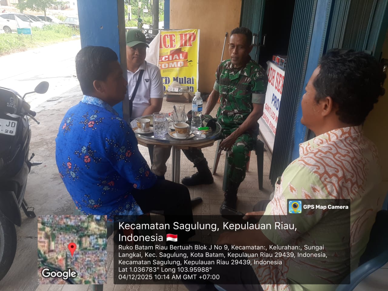 Kodim0316] Babinsa Kelurahan Sungai Langkai, Koramil 02/Sekupang, Sertu Beldi, melaksanakan kegiatan silaturahmi dan komunikasi sosial (komsos) bersama warga binaan di Kelurahan Sungai Langkai, Kecamatan Sagulung, Batam, Kamis (4/12/2025) pukul 10.00 WIB. Kegiatan ini digelar sebagai upaya memperkuat hubungan antara aparat kewilayahan dengan masyarakat serta membangun sinergi dalam menjaga keamanan lingkungan.