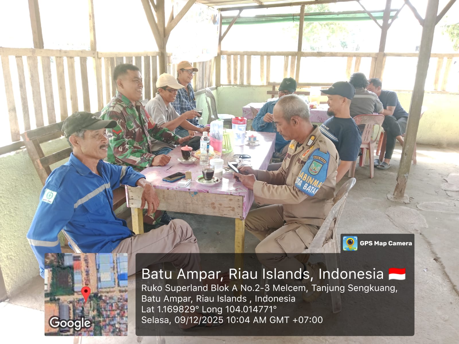 Kegiatan tersebut turut dihadiri Prabinmas Bapak Irwan, pemilik warung setempat Bapak Tamrin, serta warga Bapak Amjadi dan Bapak Ilham.