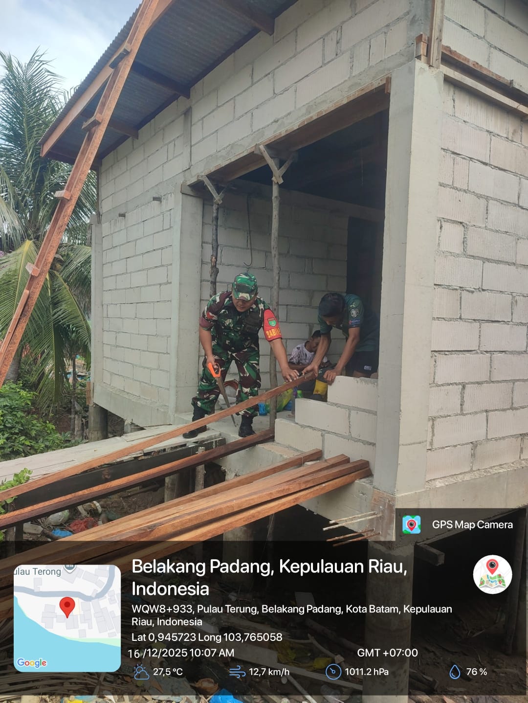 Selain itu, Koptu Dedi Nainggolan juga berkomunikasi langsung dengan para tukang bangunan yang sedang mengerjakan pembangunan rumah tempat tinggal milik warga. Dalam arahannya, Babinsa mengingatkan agar pekerjaan dilakukan dengan sungguh-sungguh dan penuh tanggung jawab agar hasil pembangunan dapat memuaskan pemilik rumah. Ia juga menekankan pentingnya menjaga kebersihan lingkungan kerja dengan tidak membuang sisa-sisa material bangunan sembarangan serta merapikannya di tempat yang telah ditentukan.