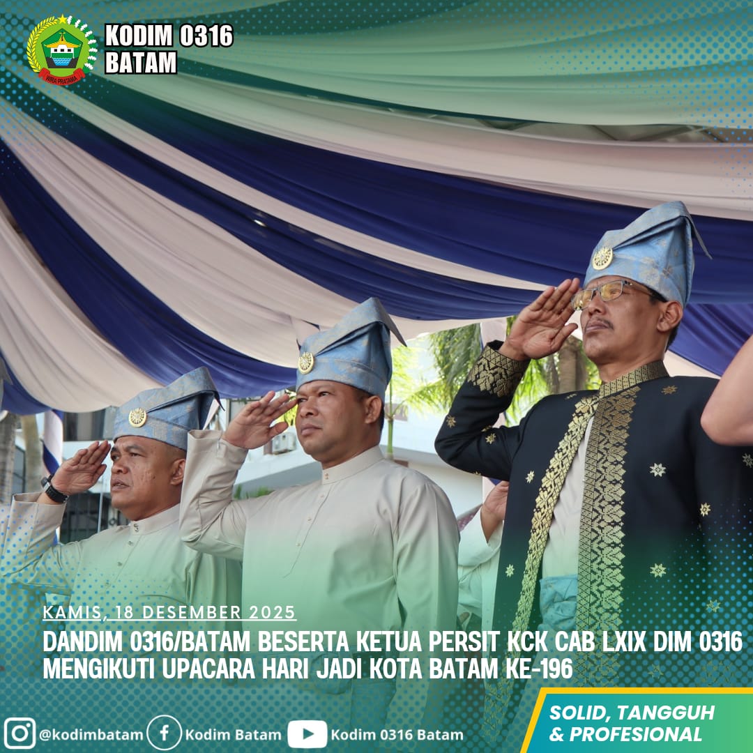 Sementara itu, Dandim 0316/Batam Kolonel Arh Yan Eka Putra menyampaikan bahwa kehadiran TNI Angkatan Darat dalam upacara peringatan Hari Jadi Kota Batam ke-196 merupakan bentuk dukungan nyata terhadap pemerintah daerah. Ia menegaskan bahwa TNI siap bersinergi dengan seluruh pemangku kepentingan dalam menjaga stabilitas keamanan serta mendukung kelancaran pembangunan di Kota Batam.