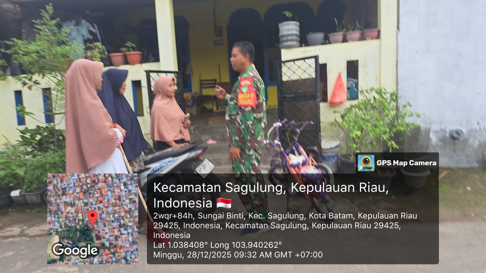 Kodim0316] Babinsa Kelurahan Sei Binti, Koramil 02/Sekupang, Kodim 0316/Batam, Serka Asran Nasution, melaksanakan kegiatan komunikasi sosial (komsos) bersama warga binaan di wilayah Kelurahan Sei Binti, Kecamatan Sagulung, Kota Batam, Minggu (28/12/2025).