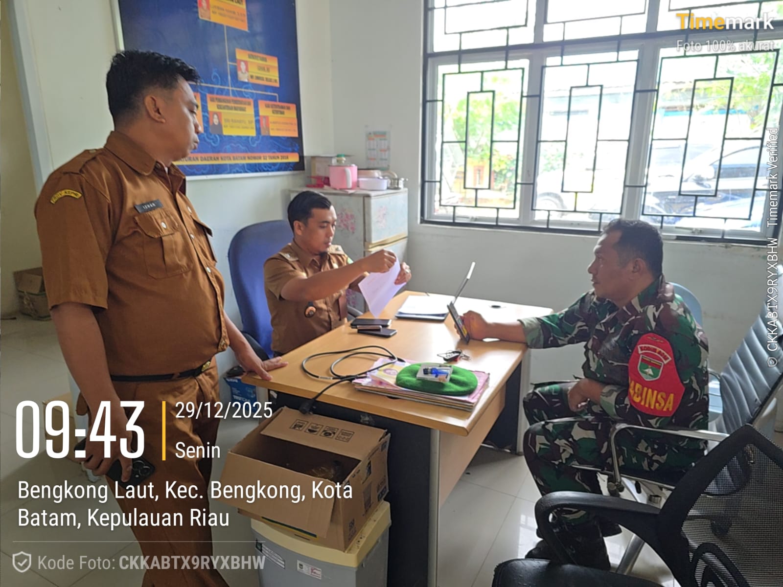 Kodim0316] Dalam upaya memperkuat sinergi antara TNI dan pemerintah daerah serta mendukung keberhasilan program nasional, Babinsa Kelurahan Bengkong Laut, Kecamatan Bengkong, Kota Batam, melaksanakan kegiatan komunikasi sosial (komsos) bersama aparatur kelurahan setempat, Senin (29/12/2025).