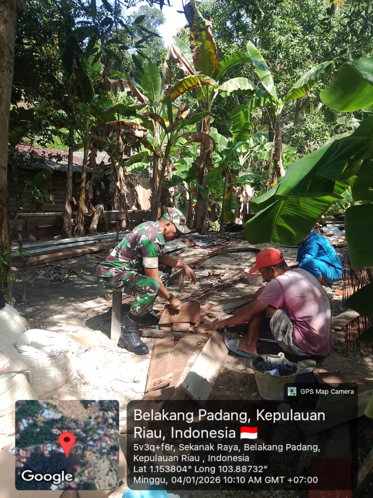 Babinsa 06 Kelurahan Kasu, Serda O. Banjarnahor, melaksanakan komsos sekaligus membantu warga yang tengah merakit besi untuk pondasi rumah di kawasan Dapur Arang. Kegiatan dimulai sekitar pukul 10.15 WIB dan berlangsung dalam suasana penuh kebersamaan.