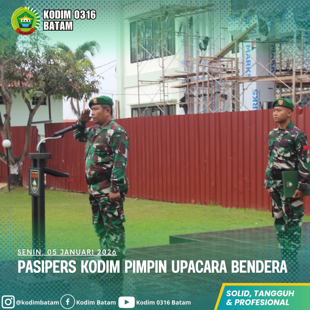 Upacara bendera di Makodim 0316/Batam menjadi momentum penguatan nasionalisme, loyalitas, dan kesiapsiagaan prajurit TNI AD dalam mendukung tugas kewilayahan