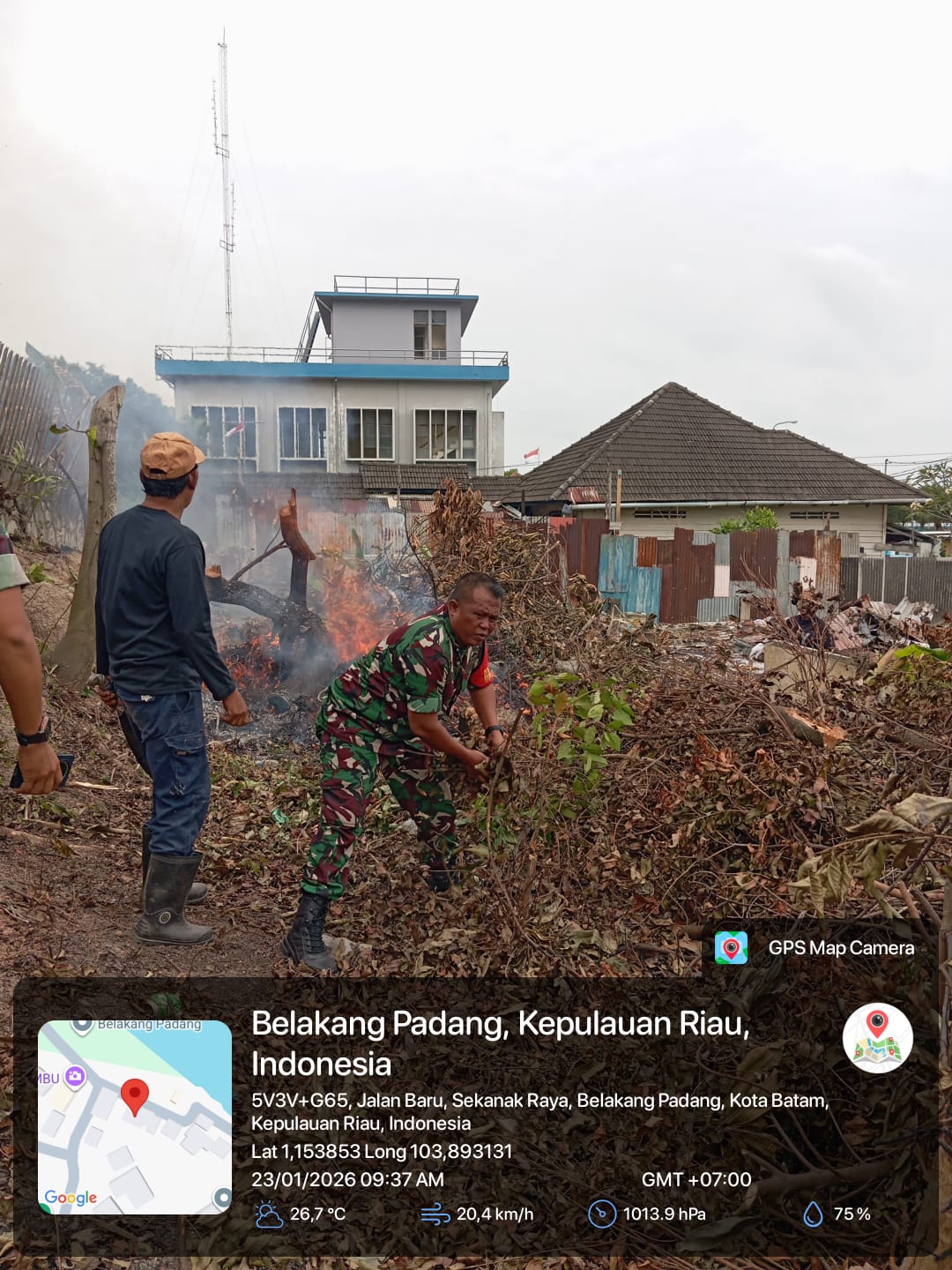 Kodim0316] Babinsa Koramil 05/Belakang Padang, Kodim 0316/Batam, terus menunjukkan komitmennya dalam mendukung program pemberdayaan ekonomi masyarakat melalui kehadiran langsung di tengah warga. Salah satu wujud nyata dukungan tersebut terlihat dalam kegiatan gotong royong pembersihan lahan Koperasi Merah Putih (KMP) yang dilaksanakan di Kelurahan Tanjung Sari, Kecamatan Belakang Padang, Kota Batam, Jumat (23/1/2026).