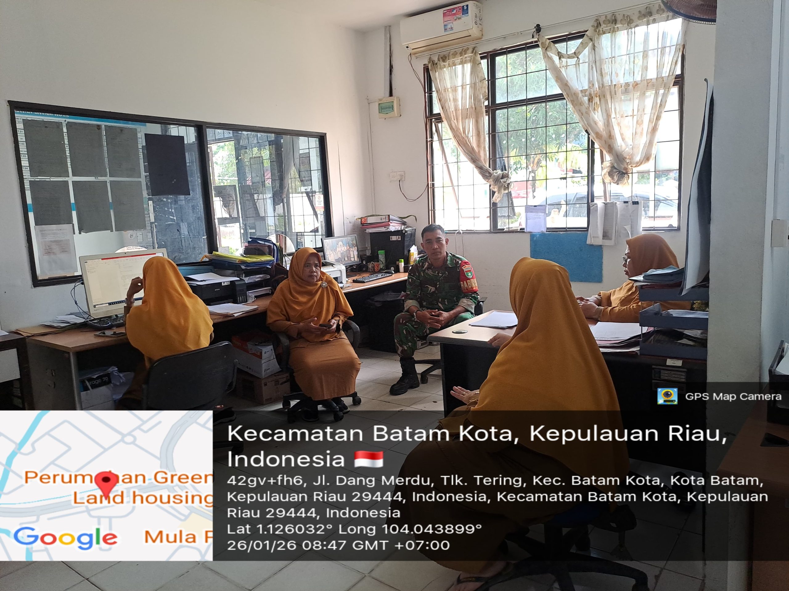Kodim0316] Babinsa Kelurahan Tanjung Tering, Koramil 03/Nongsa, Sertu Alex, melaksanakan anjangsana ke Kantor Kelurahan Tanjung Tering, Kecamatan Batam Kota, Senin (26/1/2026) pagi.