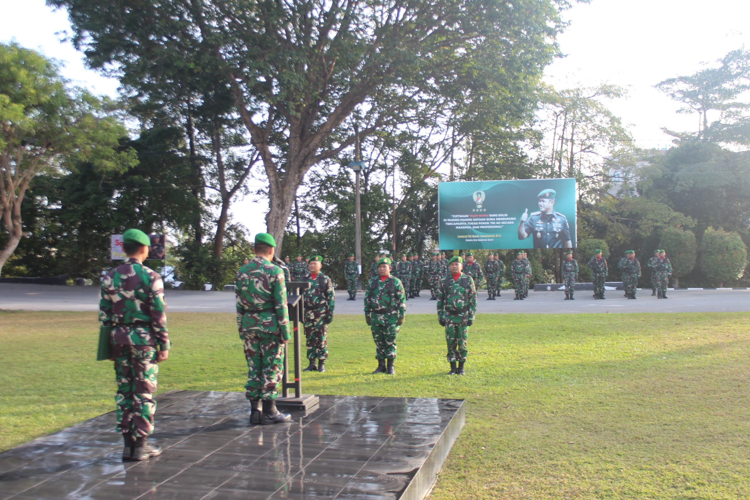 “Upacara bendera bukan hanya rutinitas seremonial, tetapi sarana pembentukan karakter prajurit agar selalu disiplin, bertanggung jawab, loyal, dan memiliki jiwa nasionalisme yang tinggi,” tegasnya di hadapan peserta upacara.