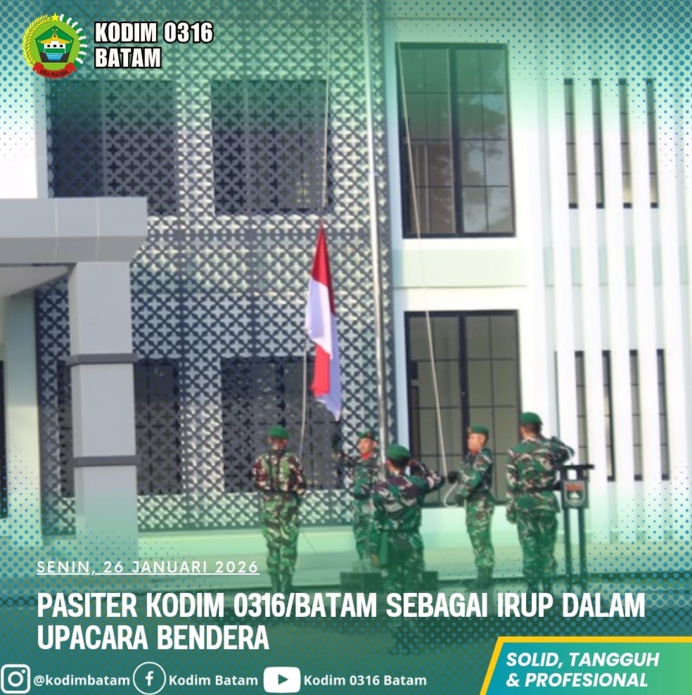 Upacara bendera tersebut diikuti oleh seluruh prajurit Kodim 0316/Batam sebagai wujud penghormatan kepada Sang Merah Putih sekaligus sarana pembinaan tradisi kejuangan, penanaman nilai-nilai kedisiplinan, serta penguatan rasa nasionalisme dan tanggung jawab sebagai prajurit TNI Angkatan Darat.