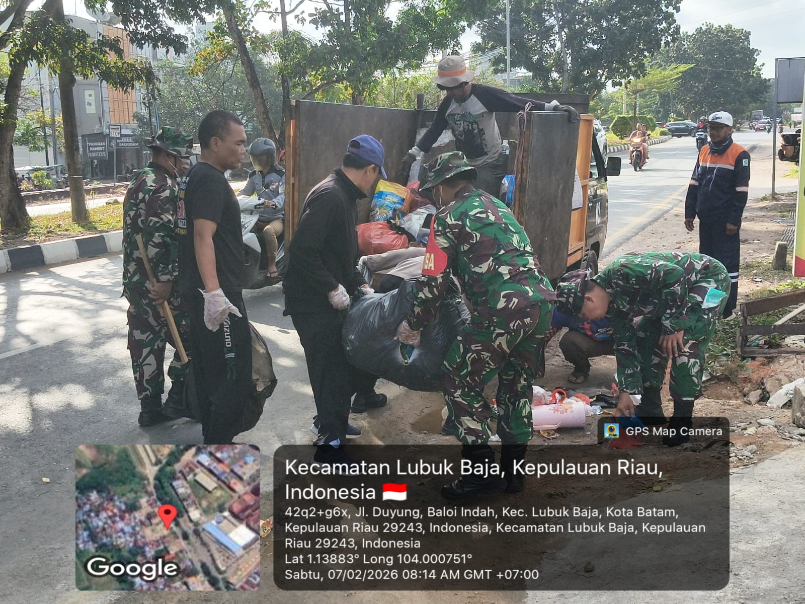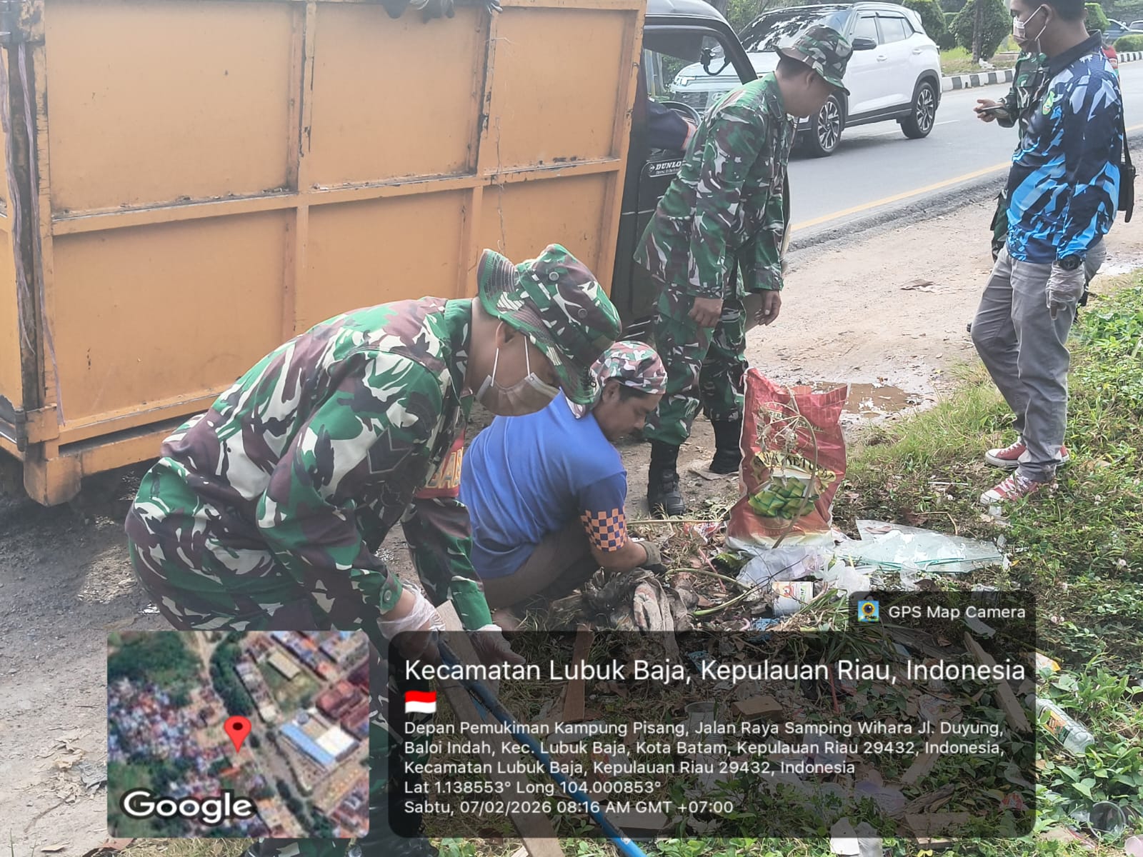Kodim0316] Dalam rangka pembinaan teritorial serta upaya meningkatkan kepedulian terhadap kebersihan lingkungan wilayah binaan, Koramil 01/Lubuk Baja melaksanakan kegiatan gotong royong bersama instansi terkait dan elemen masyarakat di wilayah Kelurahan Tanjung Uma, Kecamatan Lubuk Baja, Kota Batam, pada Sabtu (7/2/2026).