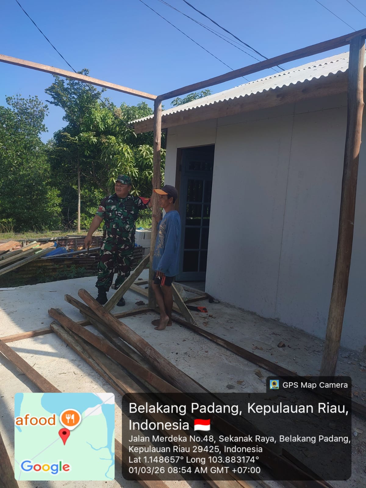 Pada Minggu (1/3/2026) pukul 09.00 WIB, Babinsa 05 Kelurahan Pulau Terong Koramil 05 Belakang Padang, Koptu Dedi Nainggolan, melaksanakan kegiatan komsos bersama warga binaan di Kampung Pulau Sekanak, Kecamatan Belakang Padang. Kegiatan tersebut diikuti oleh warga setempat, di antaranya Bapak Jujud dan Bapak Surdi.