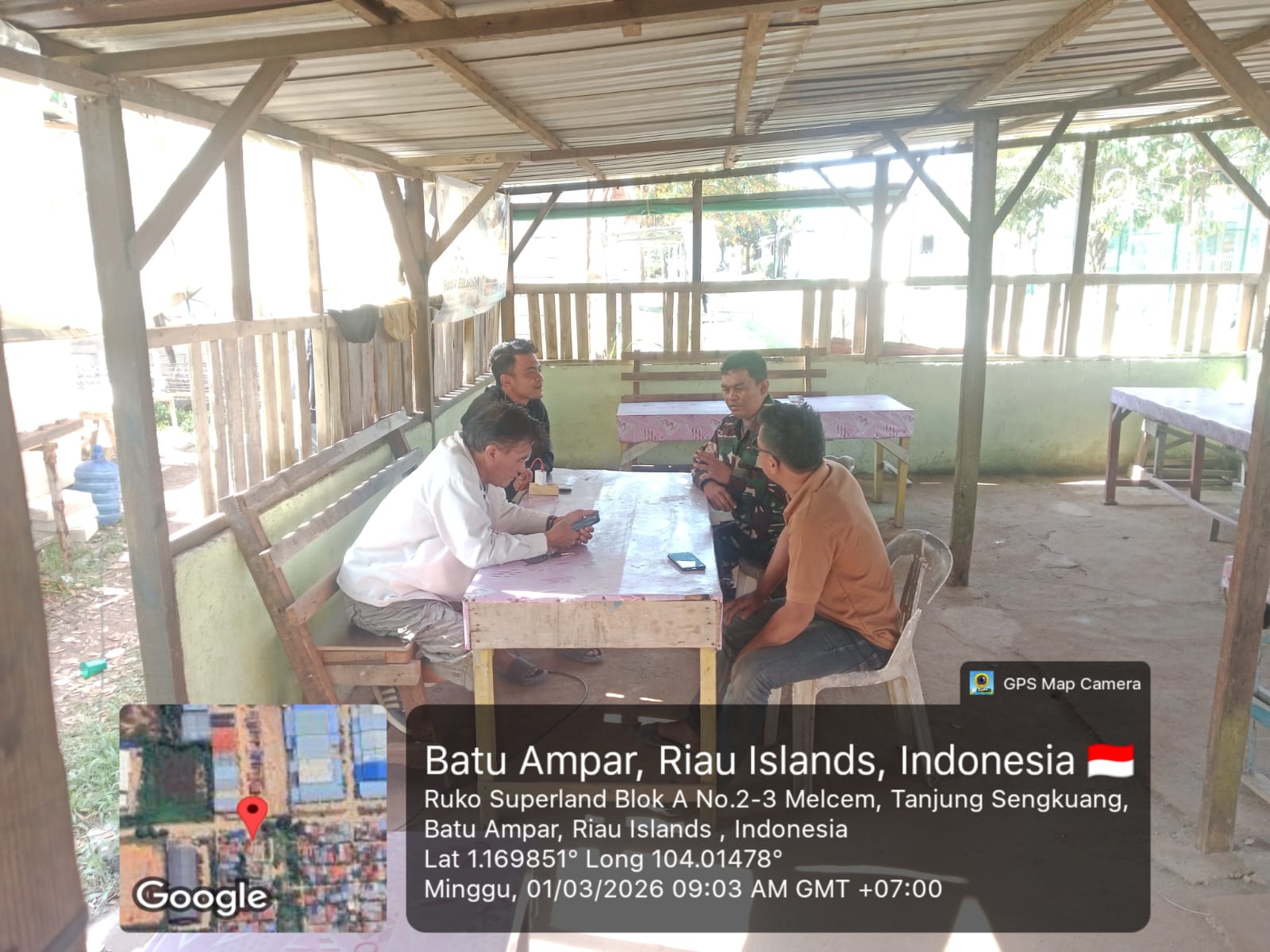 Pada Minggu (1/3/2026) pukul 09.10 WIB, Babinsa 03/Kelurahan Tanjung Sengkuang Koramil 01/Lubuk Baja, Kopda Jakson Purba, melaksanakan komunikasi sosial (komsos) bersama warga di RT 01 RW 06 Kelurahan Tanjung Sengkuang.