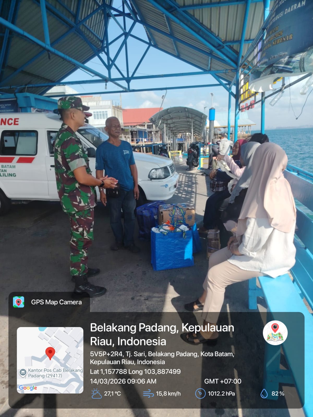 Kodim0316] Bintara Pembina Desa (Babinsa) Kelurahan Tanjung Sari, Serka Eko Pranoto dari Koramil 05/Belakang Padang melaksanakan kegiatan komunikasi sosial (komsos) dengan masyarakat pengguna transportasi laut di kawasan Pelabuhan Kuning, Kecamatan Belakang Padang, Kota Batam, Sabtu (14/3/2026).