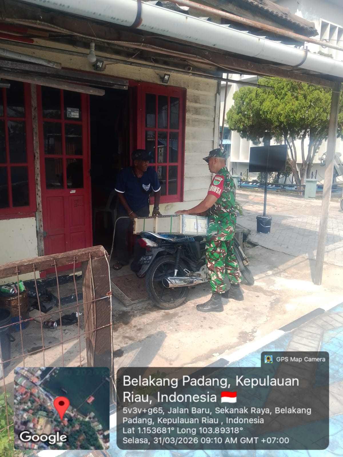 Kodim0316] Upaya mempererat hubungan antara TNI dan masyarakat terus dilakukan melalui kegiatan komunikasi sosial (komsos) di wilayah pesisir. Babinsa Koramil 05/Belakang Padang, Kodim 0316/Batam, aktif turun langsung ke lapangan untuk membangun kebersamaan sekaligus meningkatkan kesadaran warga terhadap keselamatan dan lingkungan.