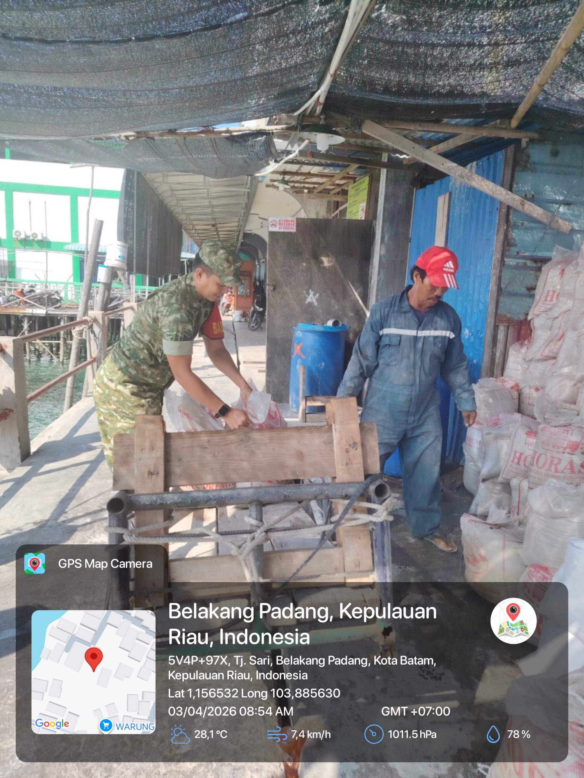 Babinsa 02/Kelurahan Tanjung Sari, Serma Eko Pranoto, melaksanakan komsos bersama warga binaan sekitar pukul 09.00 WIB. Dalam kegiatan tersebut, ia berinteraksi langsung dengan para pekerja buruh angkat material, yakni Sarno dan Lami, yang sehari-hari bekerja mengangkut pasir dan bahan bangunan.
