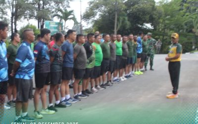 Kodim0316] Suasana penuh energi tampak memenuhi Lapangan Makodim 0316/Batam pada Senin pagi, 8 Desember 2025.Puluhan prajurit dari berbagai jajaran Kodim berkumpul untuk mengikuti Garjas (Garansi Jasmani) Periodik Semester II, rangkaian penilaian kebugaran fisik wajib bagi setiap prajurit TNI AD. Kegiatan berlangsung sejak pagi dan dipimpin langsung oleh Kajas Korem 033/Wira Pratama, Kapten Inf Gibson Siahaan….