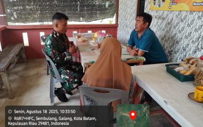 Kodim0316] Babinsa 03/Kelurahan Pemping Koramil 05/Belakang Padang, Serka Eko, melaksanakan kegiatan Komunikasi Sosial (Komsos) bersama warga binaan di Kelurahan Pemping, Kecamatan Belakang Padang, Rabu (20/8/2025). Dalam kesempatan itu, Serka Eko turut membantu meringankan pekerjaan warga sekaligus menjaga keakraban dengan masyarakat setempat. Ia juga menyampaikan pentingnya bekerja dengan sungguh-sungguh agar hasil memuaskan serta selalu bersyukur atas…