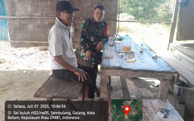 Kodim0316] Babinsa 03/Pemping Serka Eko Pranoto melaksanakan kegiatan komsos bersama warga binaan bertempat di Kelurahan Pemping, Kecamatan Belakang Padang.Selasa [02/07/2025]. Adapun kegiatan komsos dilaksanakan pada pukul 09.00 Wib. Turut hadir dalam kegiatan komsos tersebut, Babinsa 03/Kel.Pemping, Pak Zakaria. Pada kesempatan tersebut babinsa juga menyampaikan kegiatan komunikasi sosial ini bertujuan untuk mempererat hubungan tali silaturahmi antara…