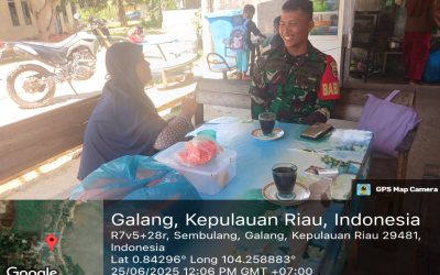 Kodim0316] Babinsa 19 Kelurahan Sungai Langkai, Koramil 02/Sekupang, Sertu Beldi, melaksanakan kegiatan Komunikasi Sosial (Komsos) bersama warga binaan yang bertempat di Kelurahan Sungai Langkai, Kecamatan Sagulung, pada Kamis (26/06/2025). Dalam kegiatan tersebut, Babinsa menyampaikan pentingnya menjaga tali silaturahmi antarwarga serta menjalin komunikasi yang harmonis di lingkungan masyarakat. Menurutnya, keharmonisan dalam hubungan sosial merupakan fondasi utama…
